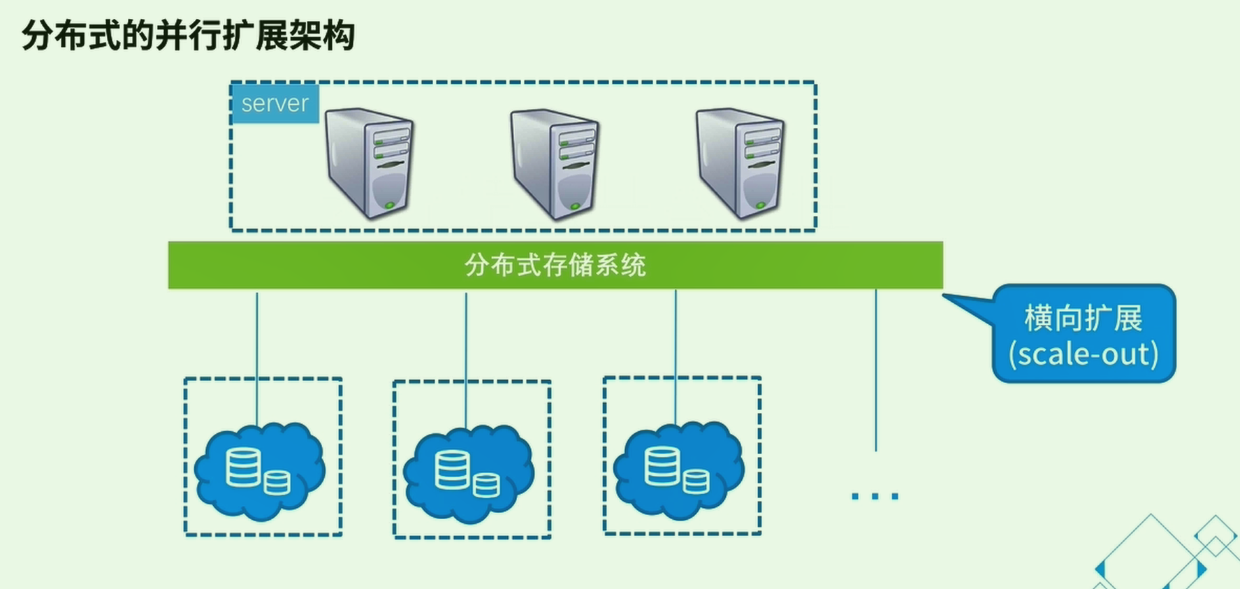 云存储采用分布式并行扩展架构(基于网络分发资源). 通常为了节省成本,会直接购置服务器,而不是单独的磁盘阵列.也会采取多重数据冗余/容错技术.