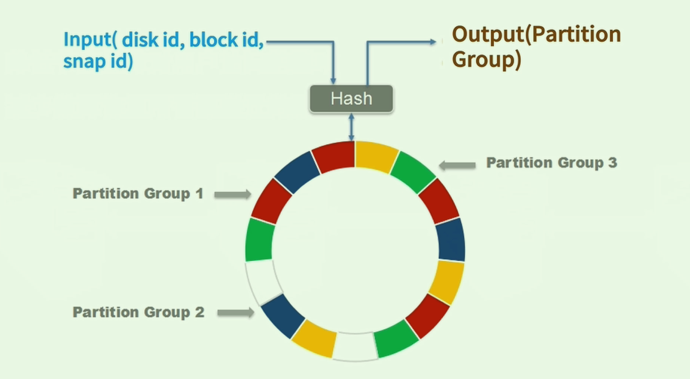 在用户访问数据的时候,每块云盘对应都有一个唯一的disk id, 与用户请求发送的block id, 可以可以构成唯一的key,可以标识存储在CS上的某个数据块. 使用该key可以从hash环上定位到具体的hash node. 从而找到这个数据块属于的partition group. 包含了CS的IP,磁盘信息.