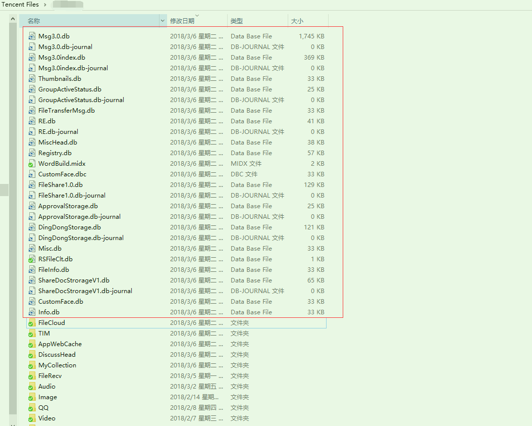 找到你tim本地文件存储的文件夹,然后把红线圈的database类文件先备份一下!(db、dbc等)然后都删了,只留下子文件夹们。然后重新启动tim,会发现大量聊天记录,配置开始重新加载,这是加载后的截图,可自行对比