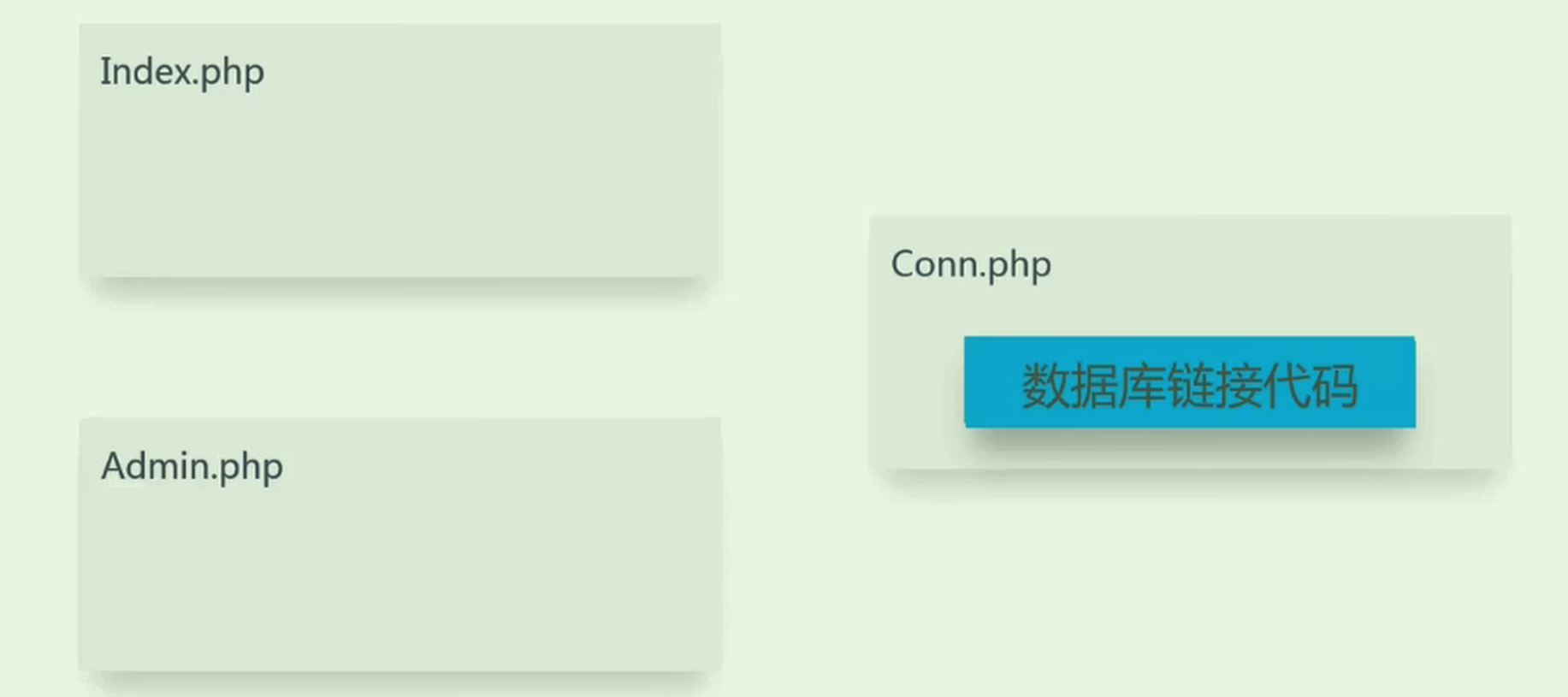 各种操作的页面都需要链接数据库,如果在每个PHP页面都放置一份相同的链接db的代码,肯定不可取.所以就会抽取通用的代码.然后各自去引用 Conn.php.这个时候要使用如下几种方式. 我给个demo