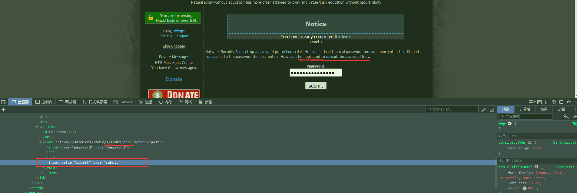 - 上来没有任何提示了.直接一脸懵逼. 先try first . 直接提交密码,咦.不同以往提示报错. 这里提示的是