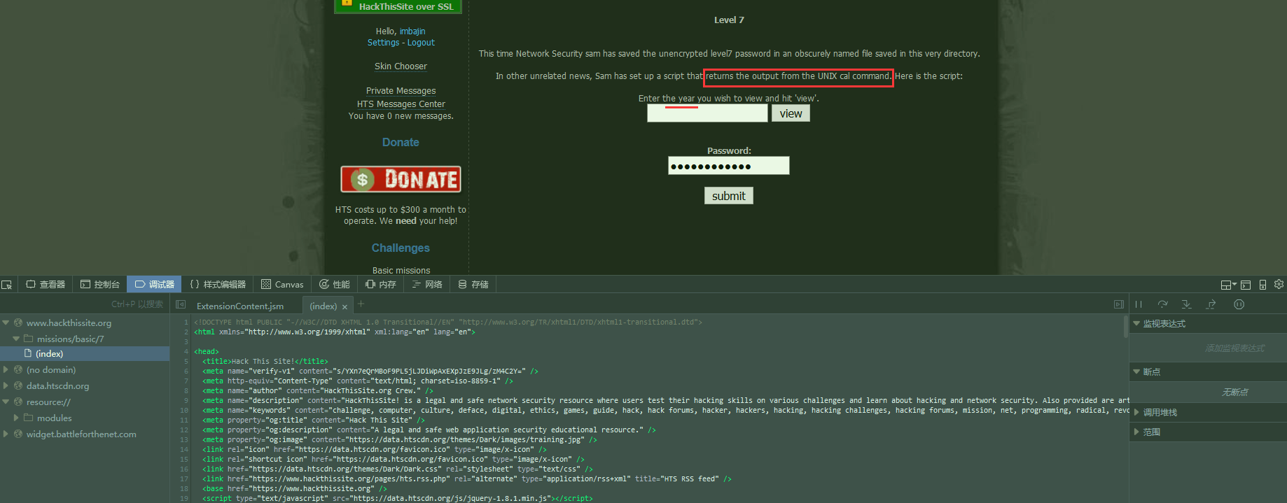 这题开始引入命令了. 给你一个命令输入窗口,你输入年份返回cal “”的返回. 那么很自然的想着去构造其他命令咯.
